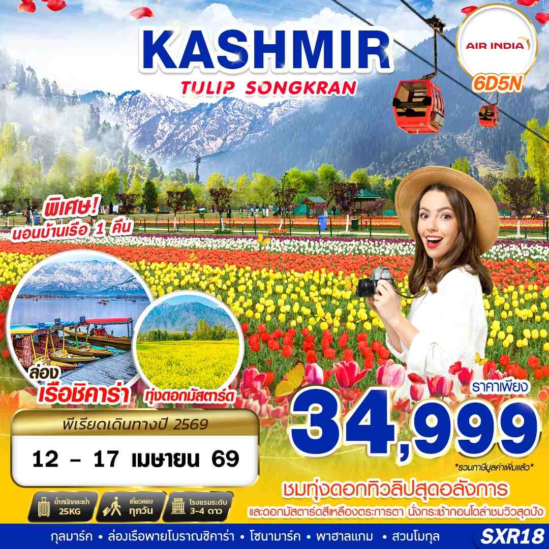 *พิเศษ!! นั่งกระเช้ากุลมาร์ค "ล่องเรือชิคารา" ชมทะเลสาบดาล - เที่ยวครบทุกวัน ไม่มีอิสระ - น้ำดื่มวันละ 2 ขวด